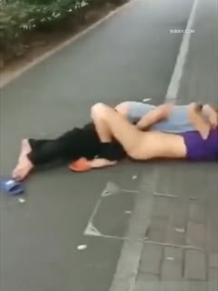 光天化日就在车水马龙 人来人往的马路上就地正法 这得有多饥渴 NB啊