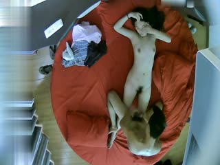 情趣酒店红色大圆床上帝视角偷拍晚上加完班和女同事开房貌似套子不合适都掉到逼里了